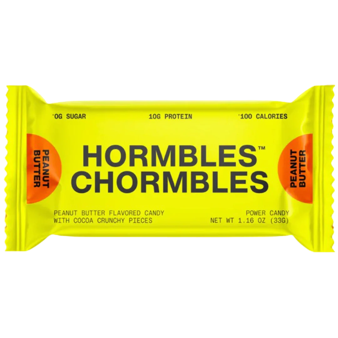 Hormbles Chormbles Peanut Butter Protein Candy Bars har en cremet smag af jordnøddesmør kombineret med knasende kakaostykker, der giver en overbærende snackoplevelse. Hver bar indeholder 10 g protein, 0 g sukker og 100 kalorier, hvilket gør den til en tilfredsstillende, skyldfri godbid, der afbalancerer smag og ernæring.