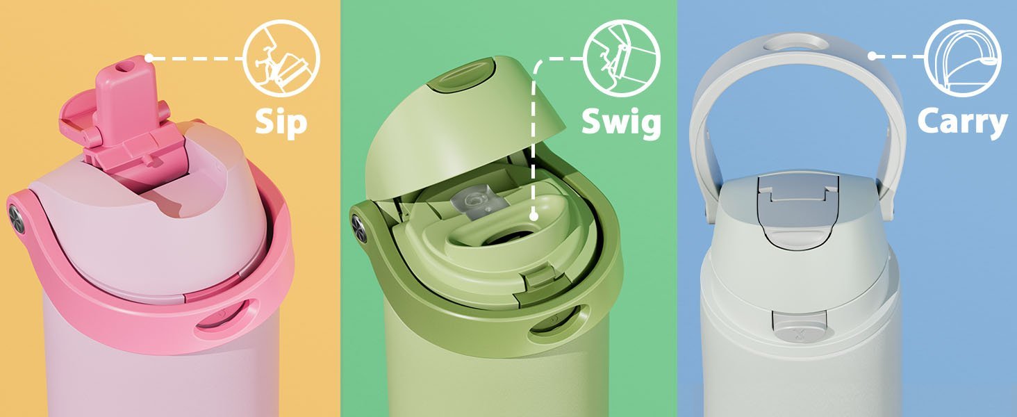 2-in-1 Lid, BPA-Free, Cold 24 Hours, Leakproof, Protective Base