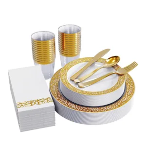 AEX 175-Piece Disposable Dinnerware Set for 25 People – Elegant and Convenient Dining Solution