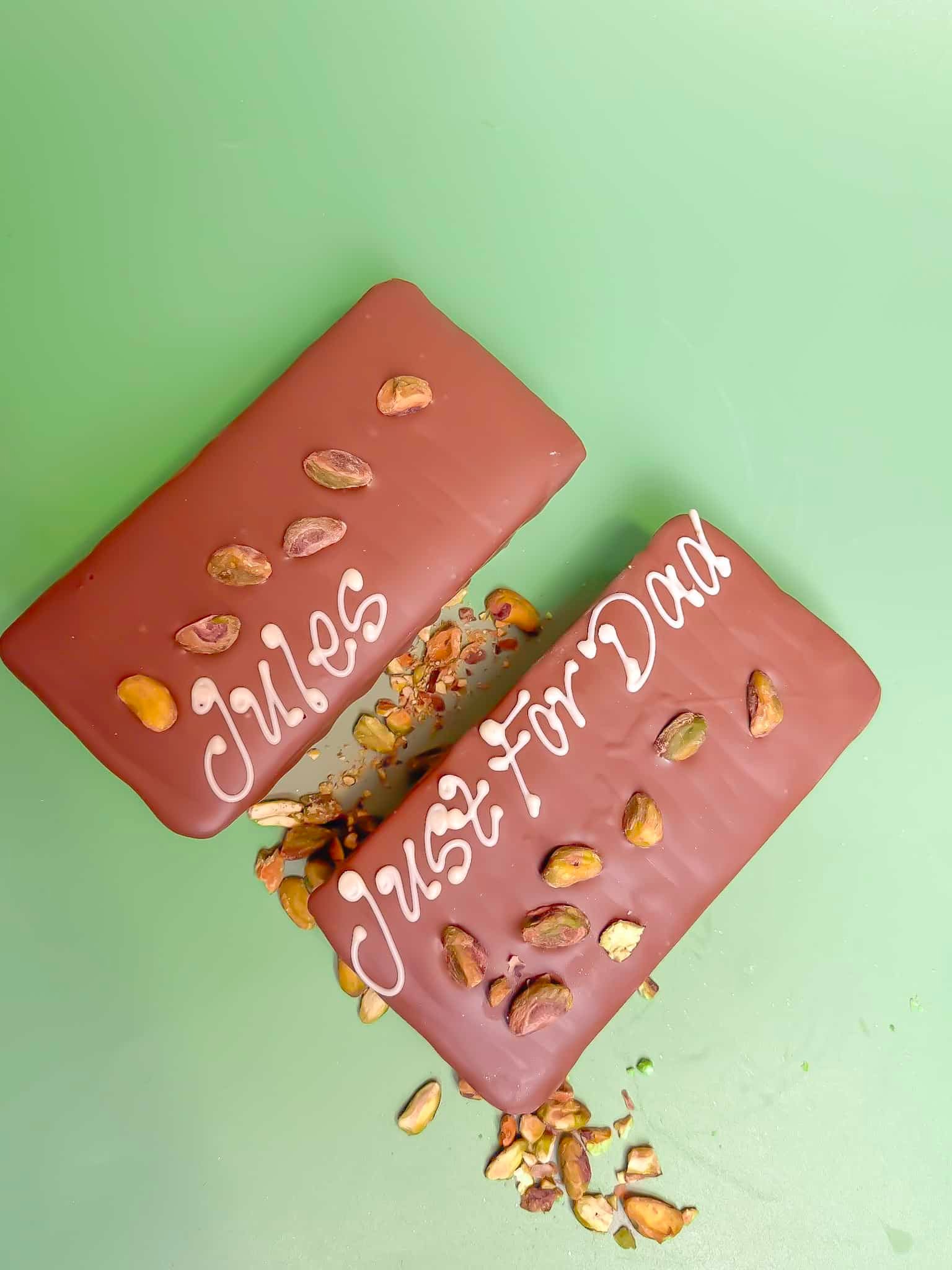 350g av ren chokoladegl?de ¨C Dubai m?lkechokolade med friske pistacier