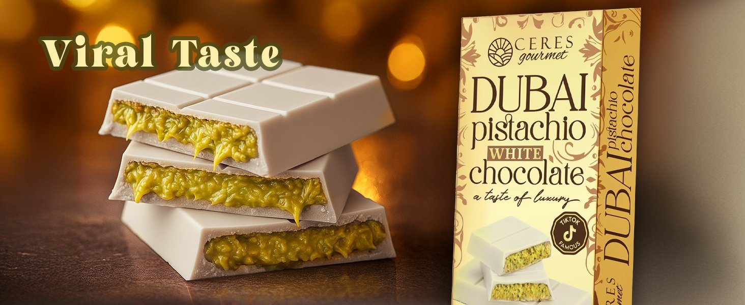 Dubai 350g m?lkechokolade med pistacie ¨C en sk?n slaktsnack